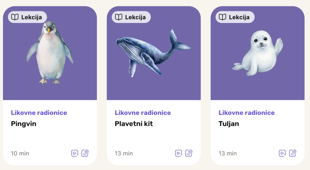 Pingvin, Plavetni kit i tuljan. Pronađi ih u Likovnoj radionici Pipo.